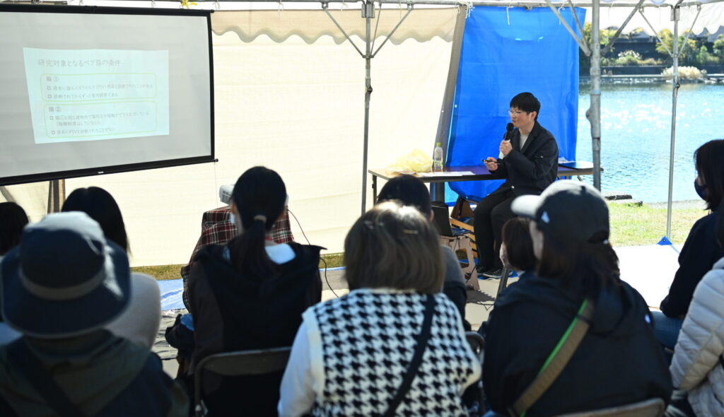 毎年市内で開催されている保護犬猫の譲渡会イベントで出張講義を行っています。この活動には院外へ出ることで、凝り固まりやすい自分の思考をほぐす目的もあります。