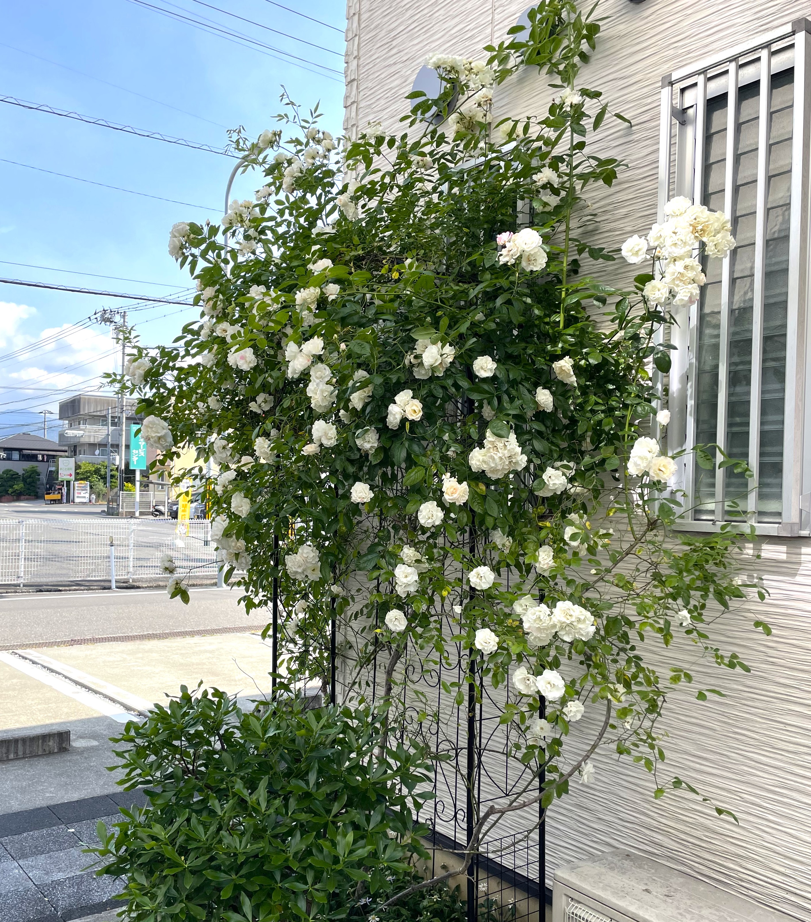 当院西側花壇の白バラが群生で咲き誇っており、見頃です。