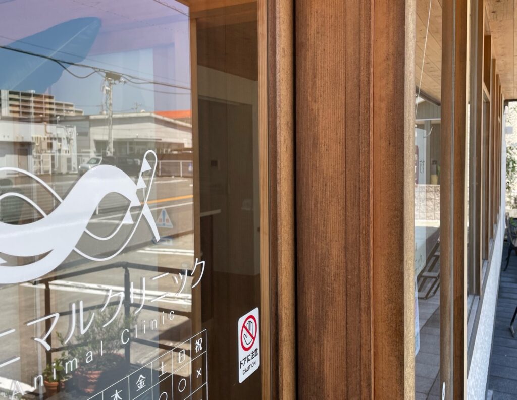 屋外の無垢材では経年劣化が避けられないことを設計時に建築士から聞かされていました。それでも、やはり飼い主様を最初に迎え入れる病院の入口はキレイな状態を保ちたいと考え、先日のGWを利用して修繕を行いました。無垢材の表面を電動サンダー(やすり)で削って古い塗装を剥がし、よく拭いてから防腐剤(キシラデコール)を刷毛で塗っていきます。