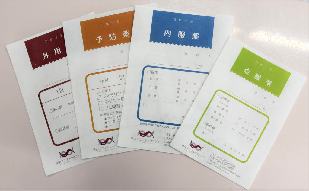 当院で使用している薬袋に新しく点眼薬の薬袋を追加し、デザインを一部改めて表記を分かりやすく新調しました。